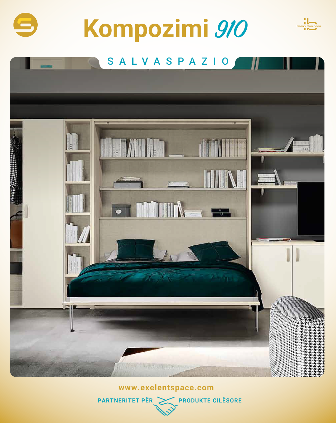 Kompozimi 910, prodhim i Italian Business dhe shpërndarë në Shqipëri nga Exelent Space, është shembulli perfekt i mënyrës se si dizajni italian ndërthur elegancën me funksionalitetin. Ky sistem salvaspazio transformon çdo hapësirë në një ambient tërheqës dhe shumëfunksional, duke kombinuar estetikën bashkëkohore me komoditetin e përditshëm. Krevati mural, që integrohet në mënyrë perfekte me bibliotekën… Continue reading Kompozimi 910 – Eleganca dhe Inteligjenca e Dizajnit Salvaspazio