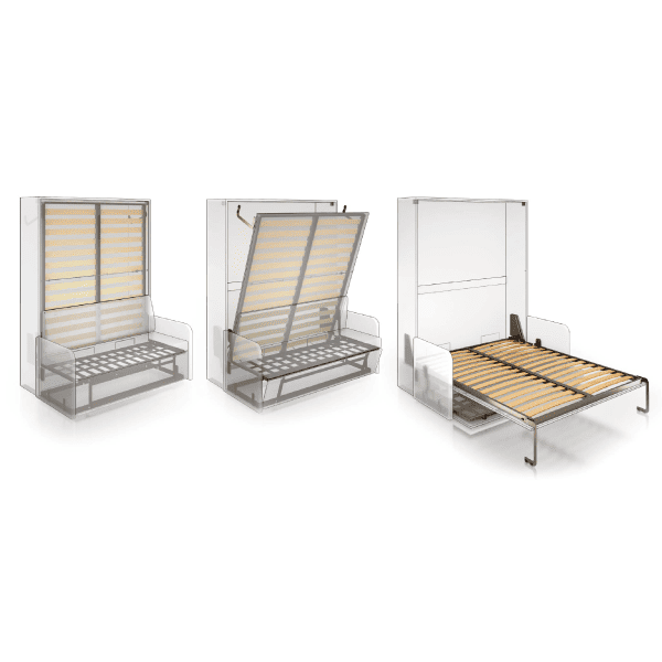 Divani i Ghost Sofa është plotësisht i integruar në strukturën e krevatit, me një kornizë të veçantë që bashkëvepron në mënyrë të sinkronizuar me mekanizmin. Gjatë hapjes së krevatit, divani paloset automatikisht, pa nevojën për ndërhyrje manuale, duke liruar hapësirën për dyshekun. Gjatë mbylljes, ai rikthehet në formën e tij origjinale, duke ofruar një vend të rehatshëm për ulje.