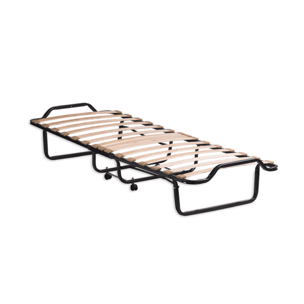 Krevati mbështetet në 4 këmbë: dy janë fikse për qëndrueshmëri të plotë, ndërsa dy të tjera janë të lëvizshme dhe veprojnë kur krevati paloset apo hapet. Kjo kombinon stabilitetin me fleksibilitetin.