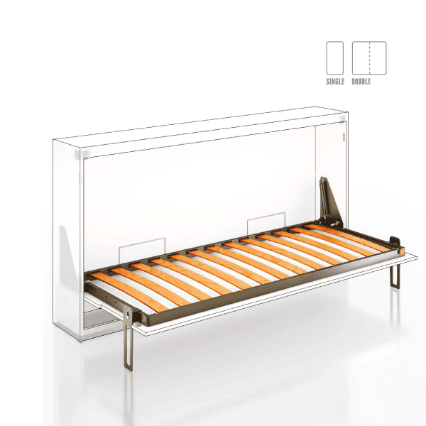 Kur nuk është në përdorim, krevati paloset në mur, duke liruar një sipërfaqe të konsiderueshme në dhomë – ideal për dhoma fëmijësh, studio, garsoniera ose ambiente me hapësira të kufizuara.